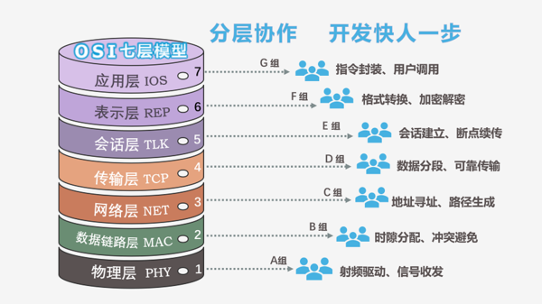 ⏭ 产品开发设计:开发一款新的无线通信协议时,团队可以分工协作:各层职责清晰,开发效率大幅提升。